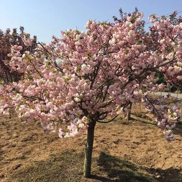 中国红樱花,花重瓣,先花后叶,花开绚丽,花色大红,花期2月上旬至3月上旬。适宜长江以南地区种植,耐寒零下15度。“中国红”樱花先花后叶,繁花满树,妩媚多姿,是森林景观和绿色通道建设的优良树种之一。