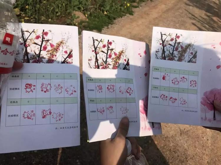 活动现场,主办方事先在樱花园区设置了7个任务点,要求各参赛选手必须在樱花园内找到7个点,每找到1个点在手册上加盖1个印章,集齐7个印章后,以到达活动指定地点的先后顺序确认名次。