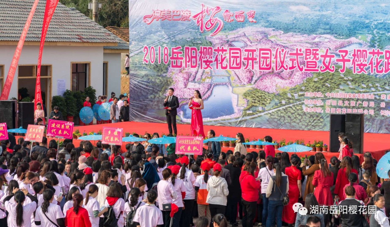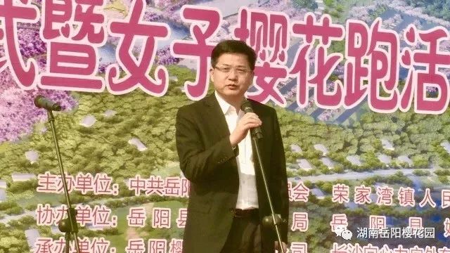 (岳阳县委书记田文静宣布开园仪式暨樱花跑活动开始!)