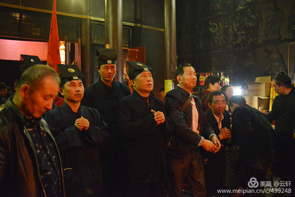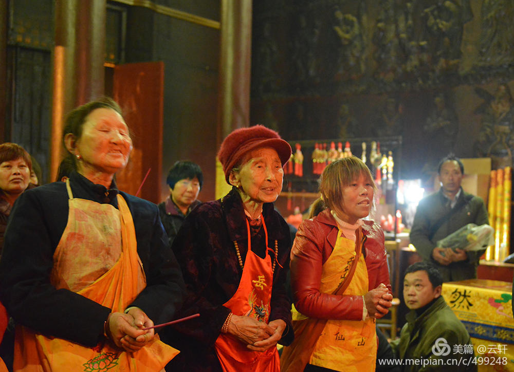 “我每年最少要来大云山两次,‘朝香祈福’是一种心灵的寄托,来了大云山后,我感觉一年办事都会很顺……”来自湖北省监利市白螺镇86岁高龄的沈澄汉老人虔诚地说道。沈老介绍,他早上7点多就起床了,和20多名村民包租了一辆中巴车,中午12点前就赶到了大云山,准备参加晚上12点的诵经祈福活动。