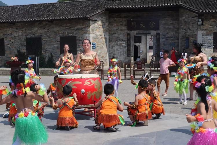 老师和孩子们一起表演百听不厌的《劝孝歌》