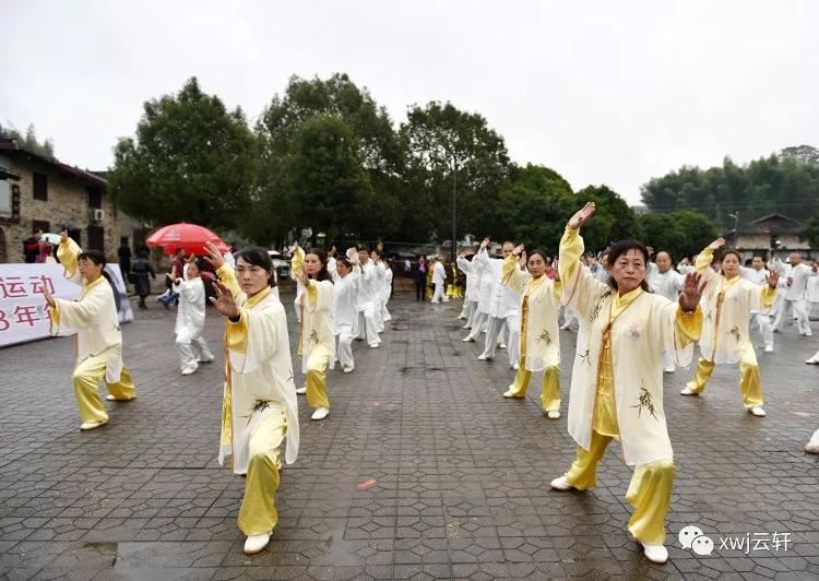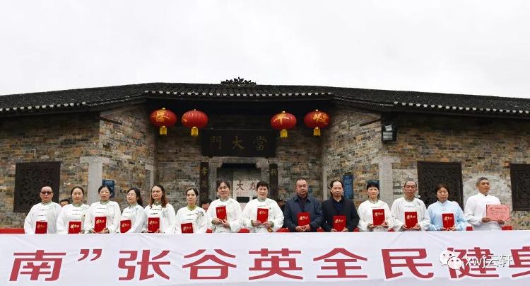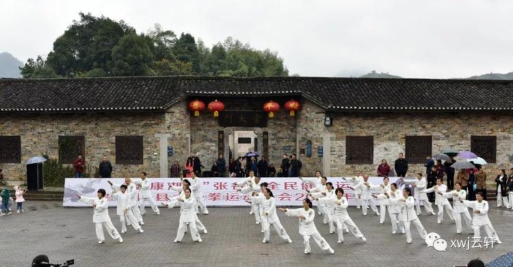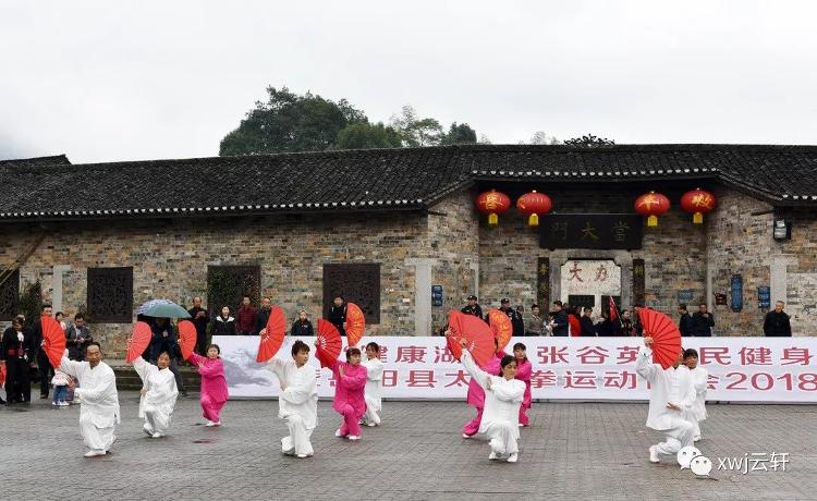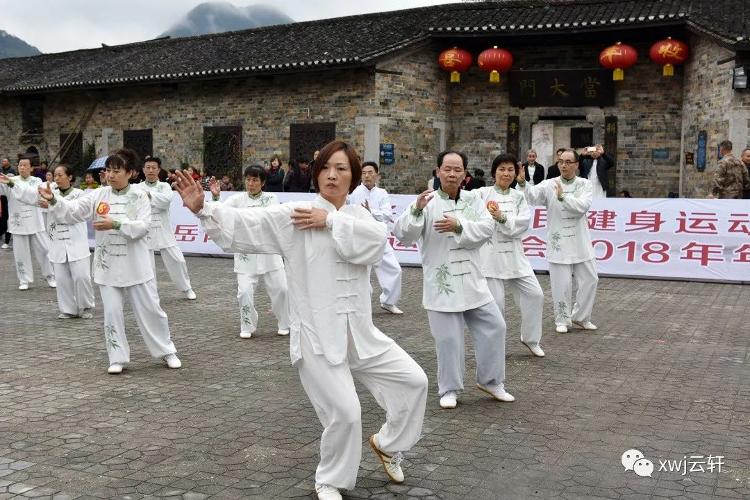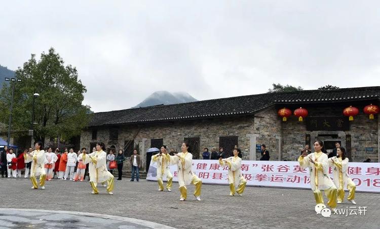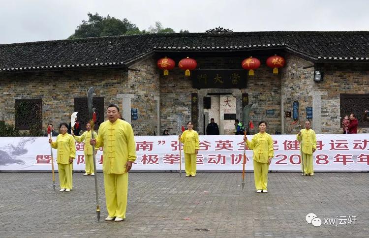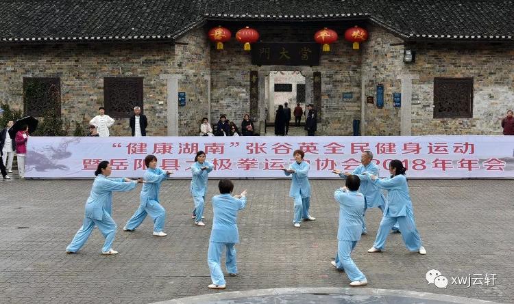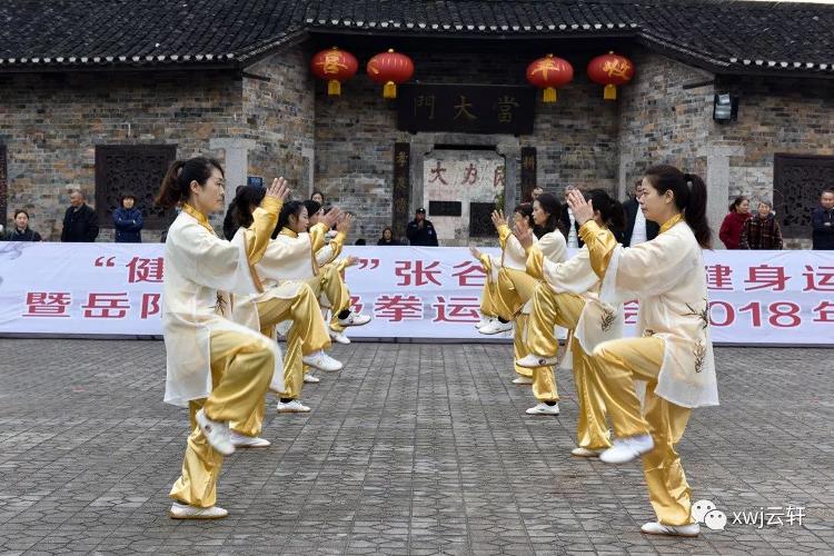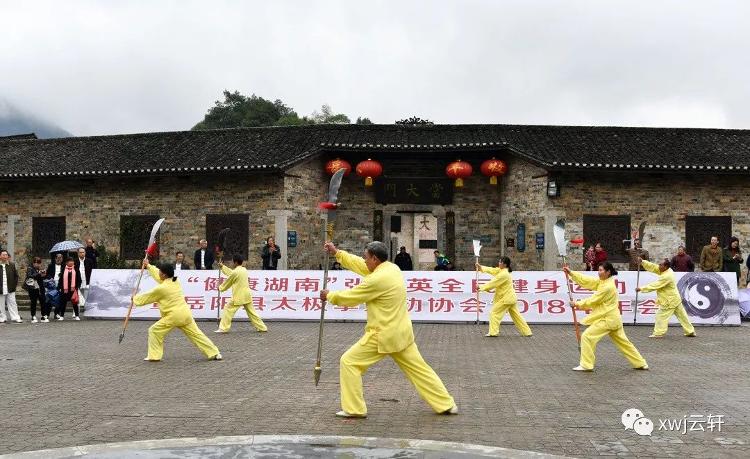 这是“健康湖南”张谷英全民健身运动暨岳阳县太极拳运动协会2018年会现场,岳阳县委常委、政法委书记余泽世,县人大常委会副主任张艳生,市太极拳运动协会会长周汇川,张谷英景区管理处书记毛一民等相关负责人出席,来自岳阳市、县的300余名太极拳友同台切磋武艺。