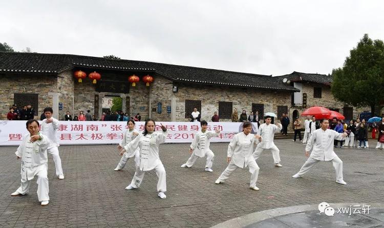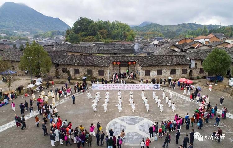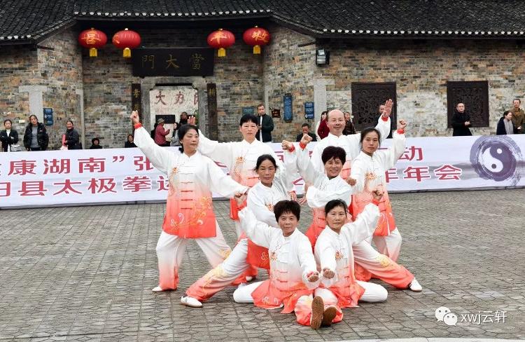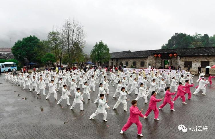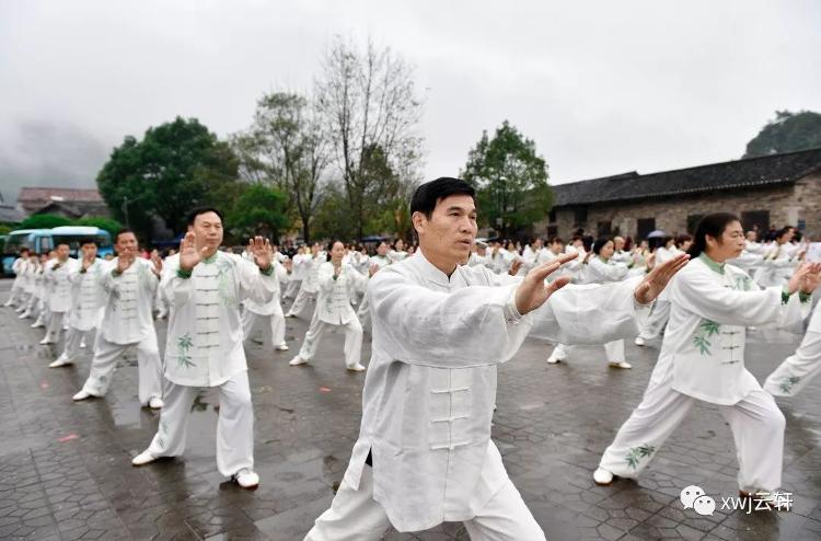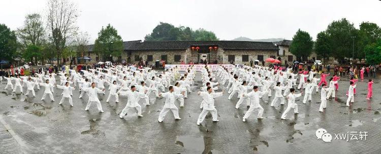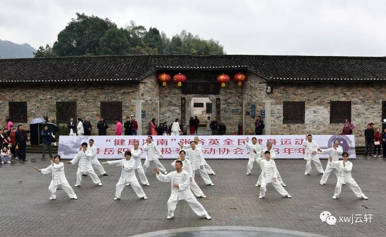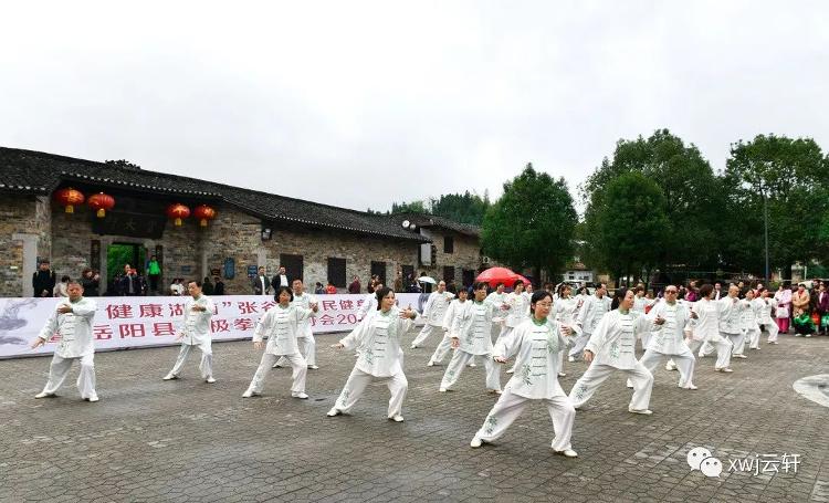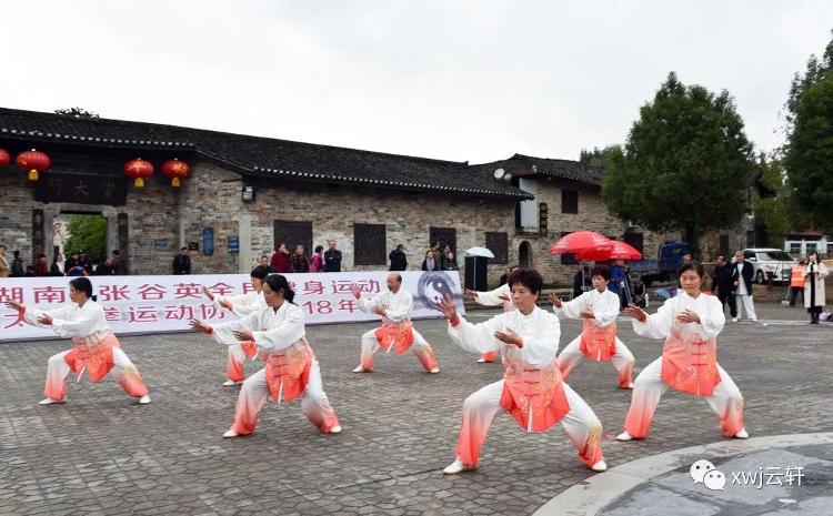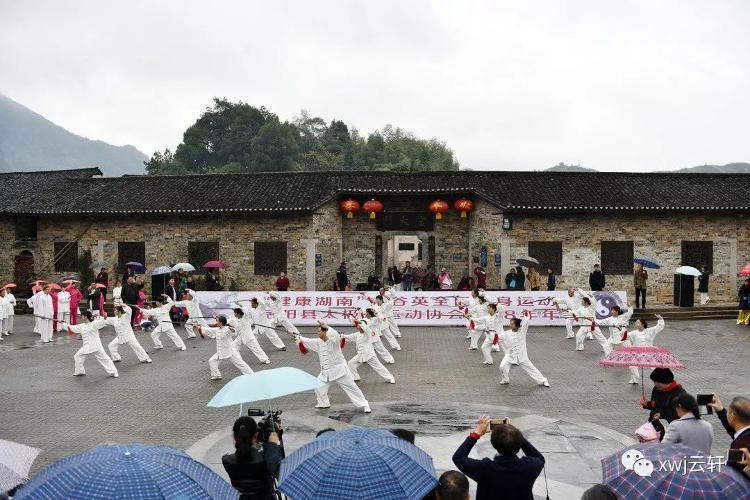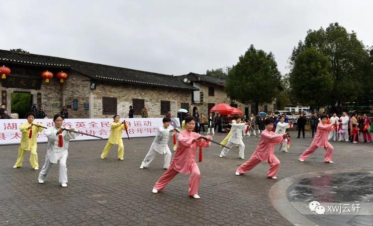 拳道阴阳日月功,万灵生克五行中。11月11日,“天下第一村”张谷英景区当大门广场上,300余名太极拳友随着婉转悠扬的音乐,整齐划一地缓缓起势,个个足踏乾坤行云流水,动作柔绵有力、节节缠绕,内劲舒缓有度、滔滔不绝,每个人的身心皆与天地融合,周身上下相随混然一体……
