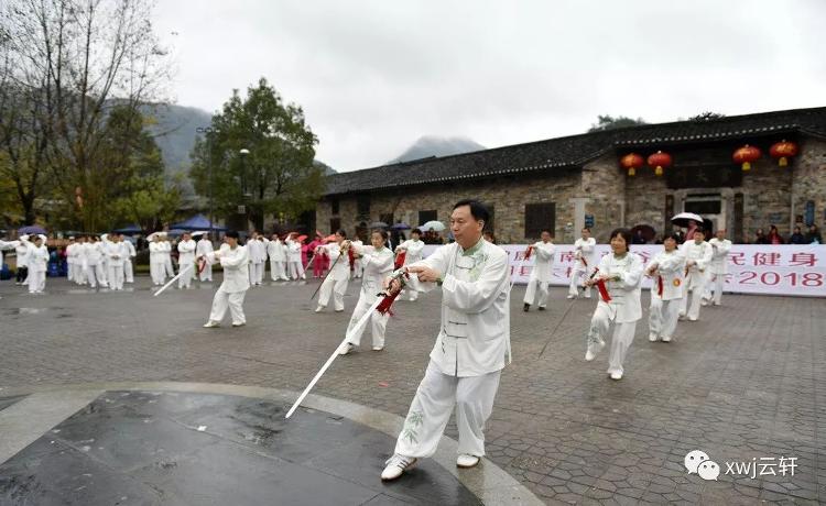 活动现场,24太极拳、36式太极剑、太极莲花扇、春秋大刀等多个节目登台亮相。太极拳表演,快慢相间、刚柔相济、闪展腾挪、神态自若,充分展现了太极拳修身养性的极佳境界;太极剑表演,轻松柔和,潇洒优美,势势相连如行云流水,曲折回旋而又收放自如,给人美的享受;春秋大刀展示,动作精炼而实用,一招一式干脆利落,让人眼亮一亮。参展队伍都拿出看家本领,给大家带来一场精彩绝伦的太极表演,博得现场观众和众多游客的点赞。