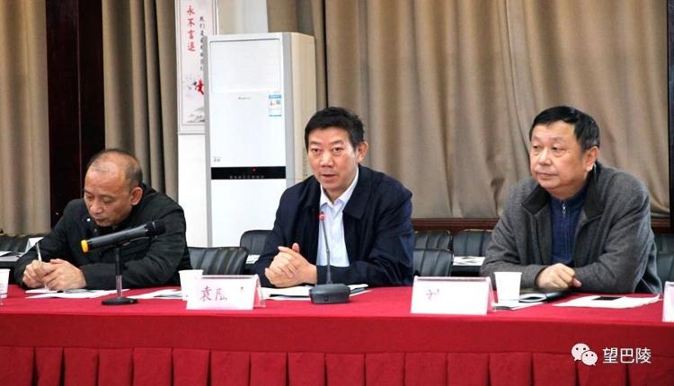 岳阳县政协主席(中)袁陆保、政协副主席刘岳(右)在“茶香小镇”座谈会上。