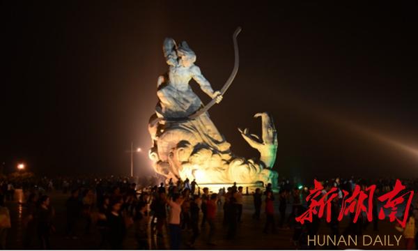 (湖南岳阳巴陵广场“后羿射巴蛇”巨型雕塑已成当地标志性建筑)