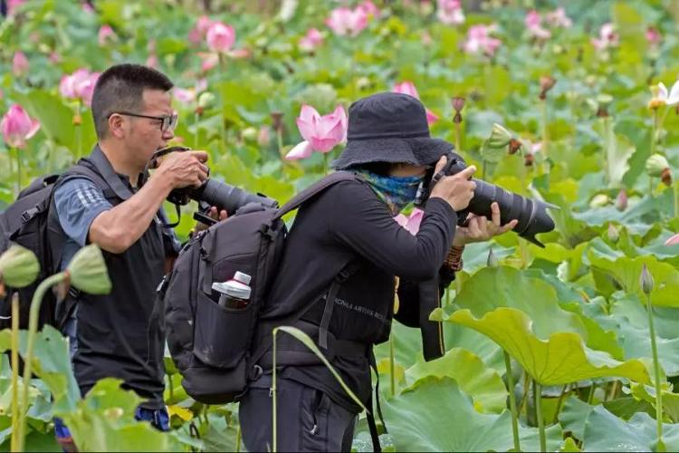 在黄秀农耕文化园和黄沙街茶场,摄影家漫步在花海和茶园拍摄风光人像,记录下茶园茶叶采摘等特色活动的点点滴滴。