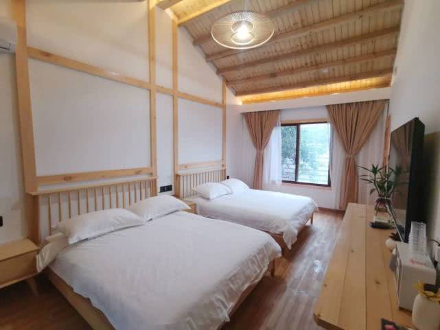 柔软的床品、明亮的灯具、舒适的家具全部整齐的摆放着。木屋内细节处处透出山水之间文艺的气息,像极了古代文人墨客的隐居地。再次休憩一晚,再爬上山顶看云海日出,体验个中滋味。