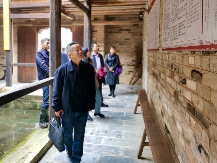 市级代表性传承人陈晖坤热情接待调研组一行,带领大家参观展馆并现场为大家讲解市级非遗项目《牛马归栏同过年》、《翰林隐士与独奶夫人》的保护工作及省级项目申报工作。