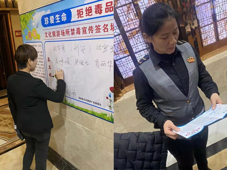 活动中,县文旅广电局干部职工和县禁毒协会文化娱乐场所分会志愿30多人,分成5个小组,深入全县各娱乐场所、网吧、星级宾馆等重点文旅场所开展禁毒宣传。活动现场,志愿者张贴禁毒宣传海报100多张,发放禁毒宣传折页300多份;组织文旅场所经营业主、从业人员、消费者开展禁毒签名承诺活动并填写禁毒调查问卷300多份,广泛宣传毒品的危害和禁毒工作的重要性。