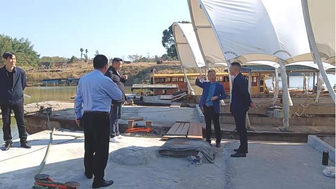 11月15日,县人民政府副县长续广宁一行到鹿角基地调研指导洞庭归渔文化园(鹿角水寨)文旅项目工作。县文旅广电局党组书记、局长邹三龙,党组副书记、副局长袁正等陪同调研。