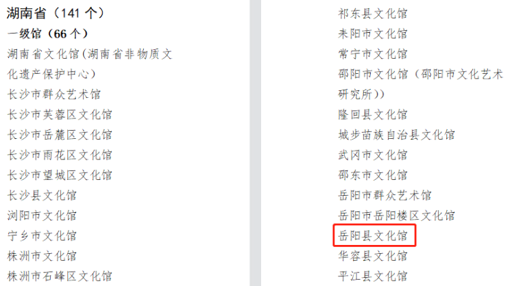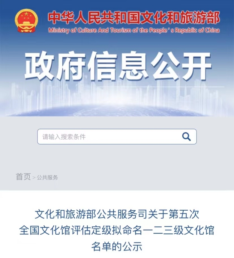 近日,文化和旅游部组织开展了第五次全国文化馆评估定级工作,经自评、线上评估和实地抽查评估等环节,确定了第五次全国文化馆评估定级拟命名一二三级文化馆名单,岳阳县文化馆拟评国家一级文化馆。