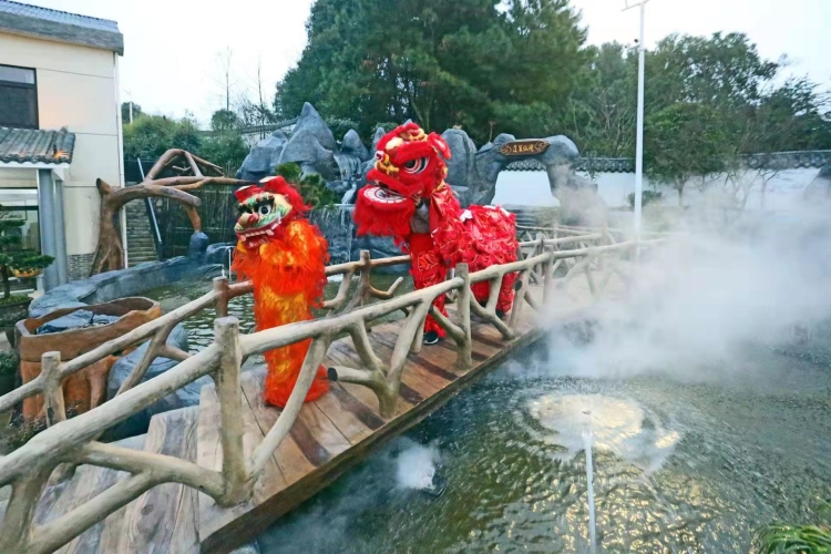 民俗文化缤纷绽放,文旅活动年味浓郁。张谷英景区开展纺织纱布、打铁、打草鞋、绣花等传统民俗节庆活动。银装素裹下的大云山景区分外迷人,游客们纷纷登山祈福。刘备洞峡谷景区开展的玩龙舞狮民俗表演让游客们感受到浓浓年味。