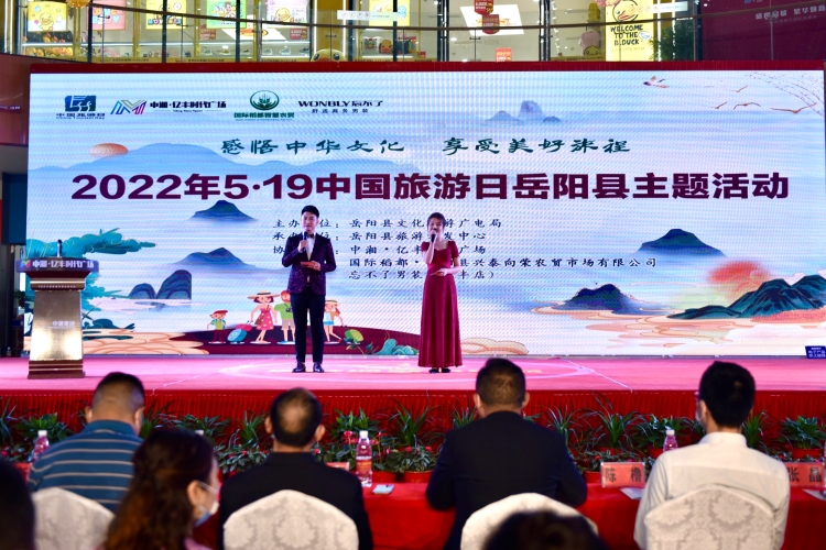 5月17日晚,由岳阳县文旅广电局主办,县旅游开发中心承办,中湘·亿丰时代广场、国际稻都岳阳县兴泰向荣农贸市场有限公司、忘不了男装(亿丰店)协办的“2022年5.19中国旅游日岳阳县主题活动”在中湘·亿丰时代广场举行。