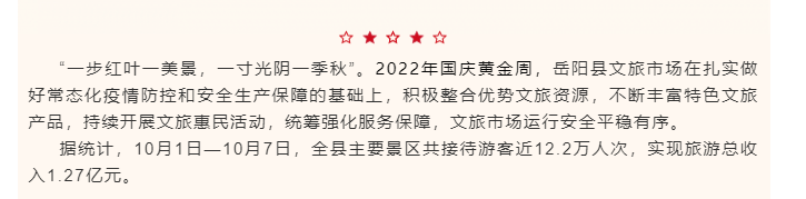 2022年国庆节假日岳阳县文化和旅游市场情况综述