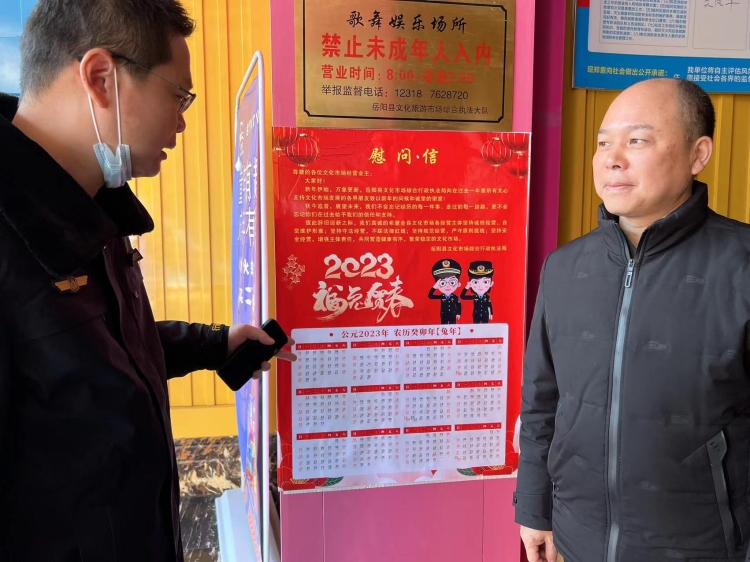 为确保我县“春节”节日期间文化市场风清气朗,1月12日县“扫黄打非”领导小组组织文旅广电局、市场局、消防大队、文化市场执法大队等职能部门开展春节节前文化市场秩序联合执法检查,确保春节期间我县文化市场经营秩序规范有序、安全稳定。