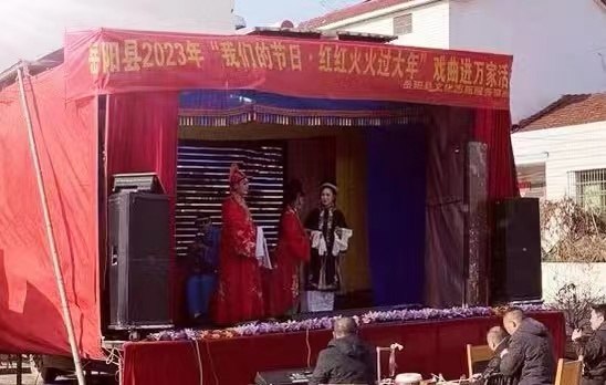 1月25日,由县文旅广电局主办的岳阳县2023年“我们的节日·红红火火过大年”戏曲进万家第八场活动在柏祥镇中村村举行。县花鼓戏剧团为村民们送上了《小姑贤》、《薛平贵回窑》等传统剧目,受到了村民们的一致好评。