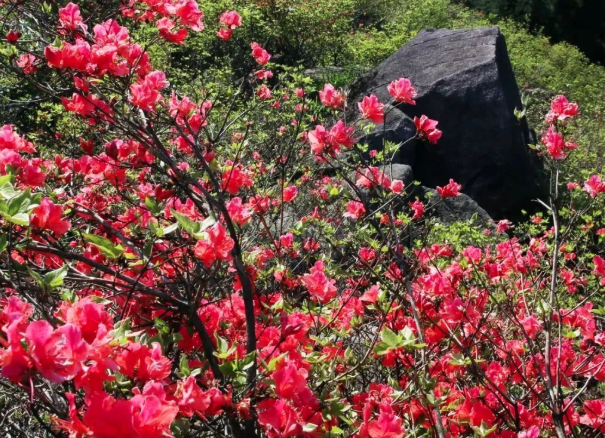 “一园红艳醉陂陀,自地连梢簇蒨罗。”每年的4月到5月,大云山的野生杜鹃花,便进入了盛花期。走过一段蜿蜒向上的山路,杜鹃花便渐渐入了眼帘,一簇簇杜鹃花于静谧中绽放,释放出些许春日的活力。璀璨如烟花,又似街市霓虹,惹得游人争相前往欣赏。来大云山登高望远、赏花、许愿祈福···