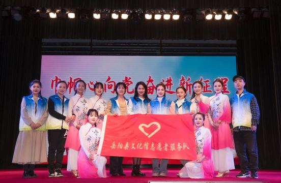 岳阳县文化馆志愿服务队成立于2015年,现有注册志愿者289人,一直以来,县文化馆廉洁文化志愿服务小分队以志愿服务为导向,用艺术的力量,通过廉洁文化志愿服务,让广大群众就近享受廉洁文化大餐。每年组织志愿者开展廉洁活动,为基层群众演出节目近百个,廉洁文化活动136场,开办清廉讲堂82堂,开讲内容涵盖家庭教育、健康养身、心理教育等,被百姓称为“最美清廉课堂”。