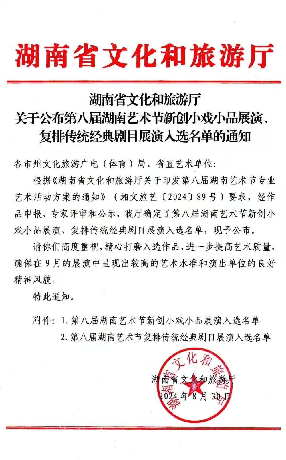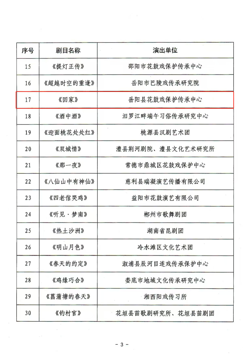 8月30日,湖南省文化和旅游厅公布第八届湖南艺术节新创小戏小品展演、复排传统经典剧目展演入选名单,岳阳花鼓小戏《回家》成功入选第八届湖南艺术节新创小戏小品展演。