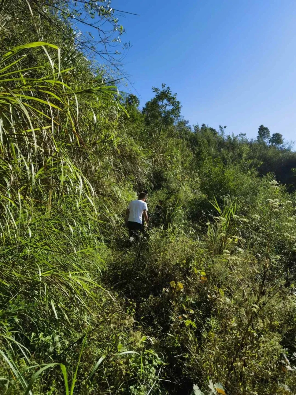 上午10点,在顺利普查完青龙关后队长指了指山顶说道“据村民所说烈士墓就在山上,我们去看一看”,说着就带着我们前往山顶。由于此山很少有人前往,杂草丛生,普查队员不得不用身体开辟一条道路,用树枝当拐杖,穿越一片竹林、树林,跨过断路,相互搀扶,最终抵达了烈士墓,看见两块墓碑。通过碑文确定是我们苦苦寻找的烈士墓,其中一位普查队员感叹道“不枉此行啊!”。随后进行定位、测量、拍照、航拍……。在采集信息时村干部给我们介绍其历史背景,在交谈中使我更加明白“四普”工作的意义所在。