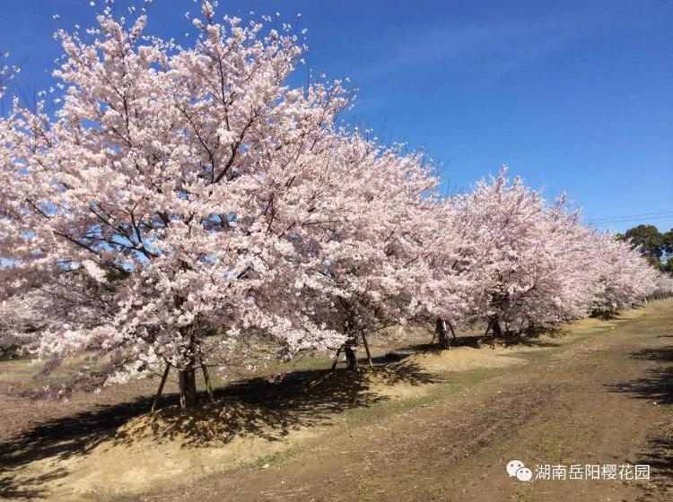 岳阳樱花园,占地1063亩,2000年建园,园区先后从全国各地引进大规格樱花数十品种,10万多株,十年以上树龄2万多株,是全国最大专业樱花园。三层三千亩樱海。充分利用樱花落叶透视性強的特点,在樱花树下择时种植花期相同的二月兰,油菜花等千亩草花,杂植落叶紫红玉兰,每年3、4月开花时间,上面千亩樱花盛开,下面千亩草花竞放,中间亿万落樱飞舞,构成花团锦簇的壮丽景观。