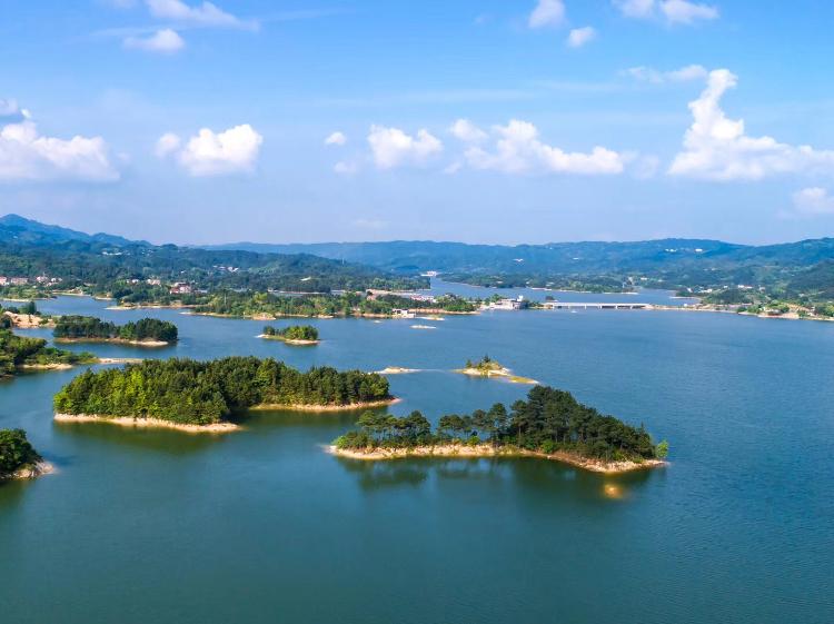 其自然风景有六大特色:一是范围大。水库水岸线总长328公里,水面6.24万亩,月田、毛田、小港三条支河汇集于此,库湾冲叉达1268条;二是气候好。水库四周群山环抱,花草丛生,涵养水份,调节气候,使之四季如春,是旅游避暑的胜地;三是孤岛多。库中岛屿星罗棋布,共有147座,其中最大的黄土山孤岛面积4220亩;四是风景美。库区内层峦叠嶂,川谷幽深,看山似螺,观湖如带,烟山雾海,藏金纳翠;这里花奇草秀,树绿山青,水鸟山花锦鳞成趣,远山近树碧波相融;倘若春冬泛舟,雾蒸霞蔚,扑朔迷离,仿佛置身于蓬莱仙境;至若朗日登岛,心旷神怡,月白风清,尽情饱览水乡之美;五是水质优。库水碧绿透彻,明净如镜,甜似甘露沁人心脾,经国家有关机构检验,被定为一级饮用水,现已供岳阳市区用水;六是名胜多。库内有“真武遗墨”、“怒斩龙潭”、“鸡凤争鸣”、“八仙登台”、“高祖相思”等众多名胜古迹和神话传说。该水库建成后淹没山头无数,形成数百个小岛,雅称“千岛之湖”,与新近开发的明代古建筑群张谷英村、大云山国家森林公园连成一片,成为岳阳市新的风景旅游区。