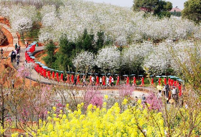 “岳阳樱花园正式开园!”3月15日上午,阳光明媚,百花竞放,来自四面八方的游客有序进入园区,随即机关企、事业单位的800名女青年,循着地图在樱花园边跑边“寻宝”。该县在樱花园开园之际开展女子樱花跑,各路游客不仅增加了园区人气,也舞活了乡村生态休闲旅游。