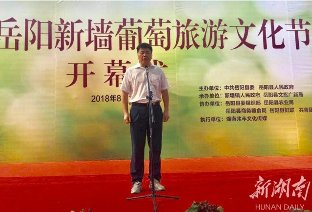 新墙葡萄节吸引了岳阳市旅发委副主任黄立,岳阳县委常委、统战部长苏红琳,县人大常委会副主任许吉程,政协副主席刘岳,县委党校校长余大红等领导嘉宾参与。副县长周里主持开幕式,分别举行了农村淘宝网上销售结对协议、旅游公司合作协议。苏红琳表示:“葡萄产业已成为新墙镇农业发展的一张‘响亮名片’,成为我县‘农业+旅游’发展的一道‘靓丽风景’。”