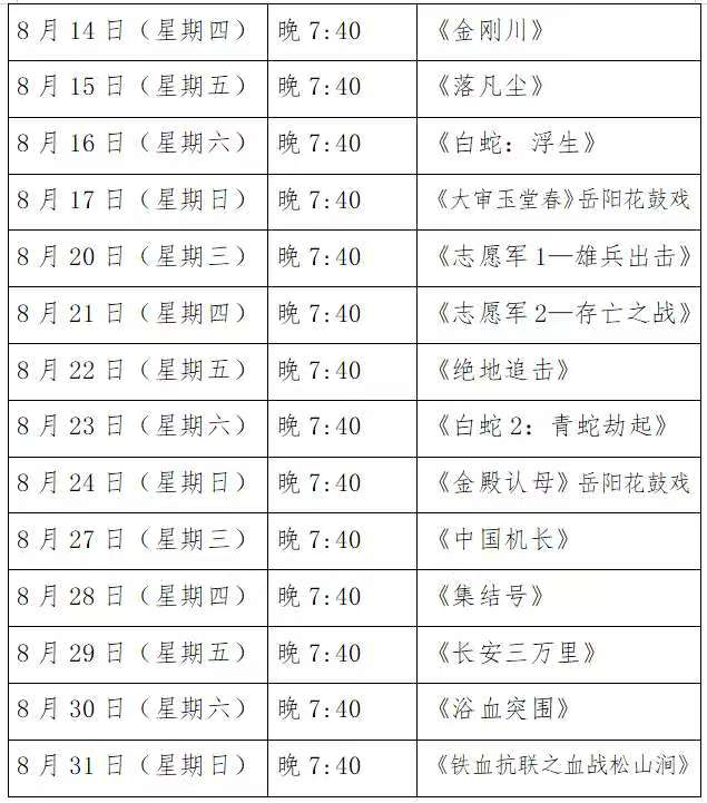 每晚映前将播放《珍爱生命预防溺水》《共建无毒巴陵》警示片。