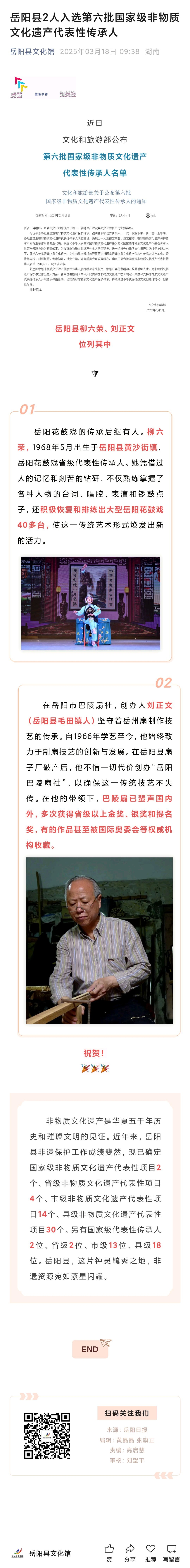 岳阳县3个项目入选第六批省级非物质文化遗产代表性项目名录