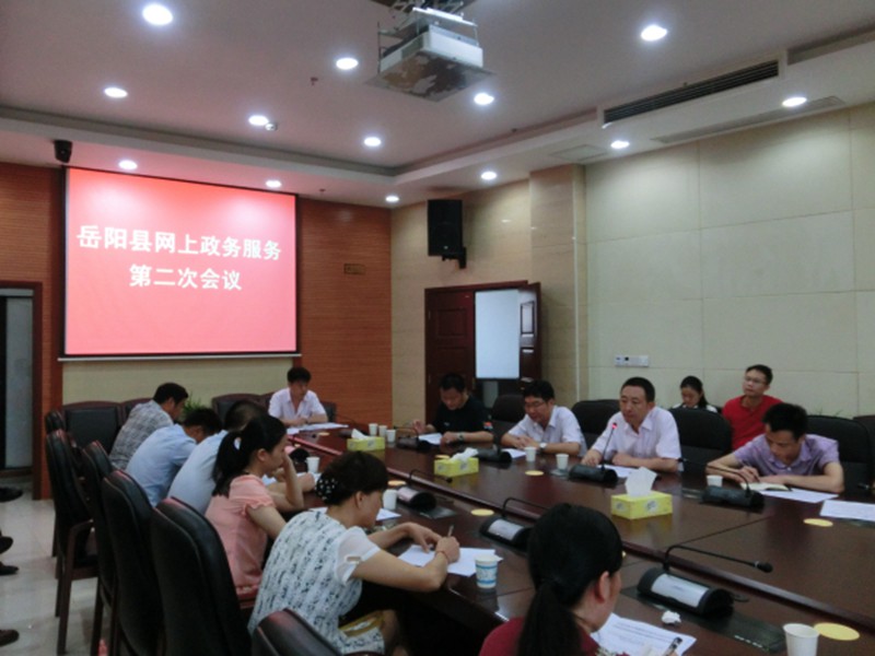 8-25上午,岳阳县网上政务服务第二次会议在政务中心会议室召开。县效能优化办,县政务服务中心等相关负责人出席会议,房产局、公安局等16家未接入网上政务服务和电子监察系统的县直单位相关负责人参加会议。