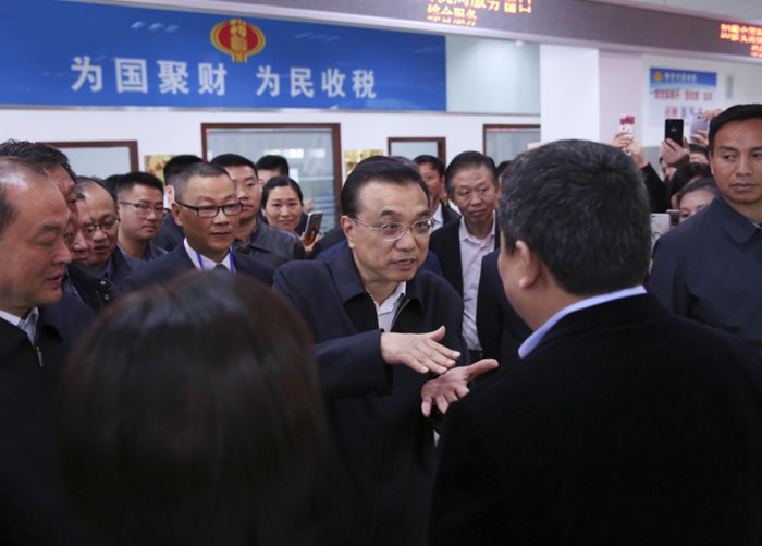 李克强25考察雅安市政务服务中心,细问大学生就业、个人及企业养老金等业务办理情况。在企业注册登记窗口,总理详询三证合一实施、新登记企业数目等情况。对前来办事的企业,总理关心营改增改革对其影响,要求国税和地税工作人员协力确保所有行业税负只减不增。