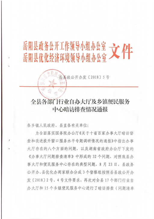 全县各部门行业自办大厅及乡镇便民服务中心暗访排查情况通报