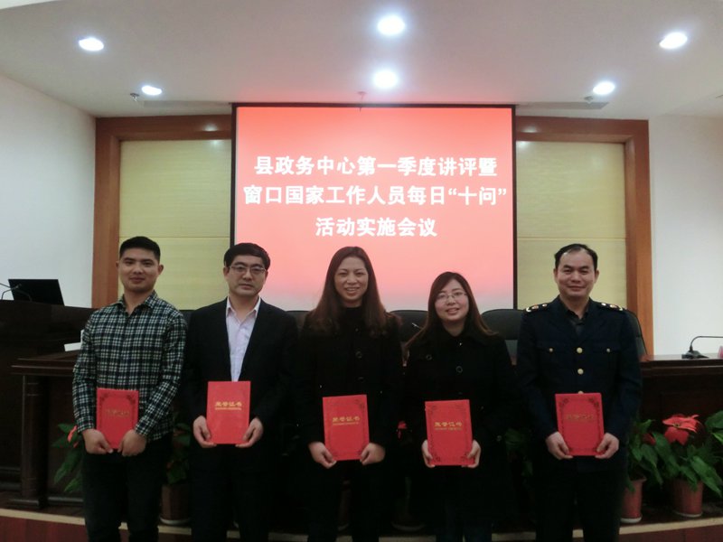 根据《政务服务中心办事大厅红旗窗口和红旗岗位评选办法》(岳县政务发〔2011〕4号)文件规定,经窗口单位书面申报,中心主任办公会评审,并商县行政效能投诉中心通过,按照窗口办件数量质量、纪律观念、考勤考核、服务态度等考核项目, 评选出以下五名同志为中心本-第一季度“政务服务红旗岗位”: