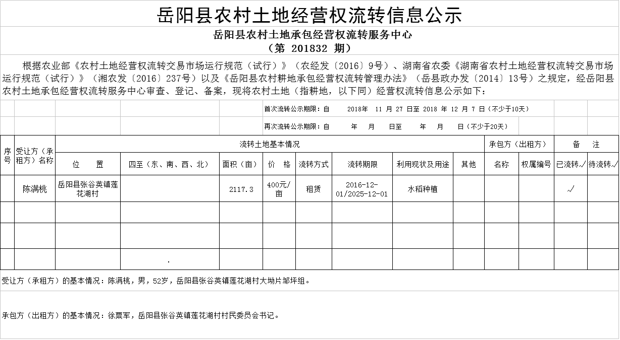 岳阳县农村土地经营权流转信息公示(第 201832 期)
