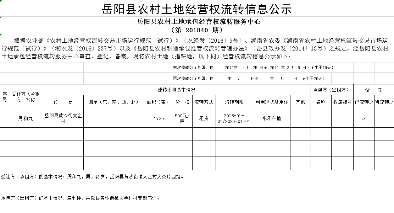岳阳县农村土地经营权流转信息公示(第 201840 期)