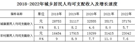 全县城乡居民人均可支配收入29534元,同比增长6.5%,按常住地分,城镇居民人均可支配收入37176元,同比增长5.7%;农村居民人均可支配收入23042元,同比增长7.6%。2022年全县居民人均消费支出17180元,比上年增长6.3%,按常住地分,城镇居民人均消费支出17209元,增长4.6%;农村居民人均消费支出17156元,增长7.7%。