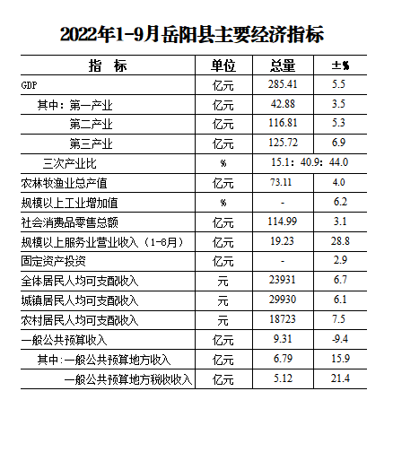 2022年1-9月岳阳县主要经济指标