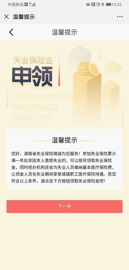 3、进入温馨提示页面点击下一步。