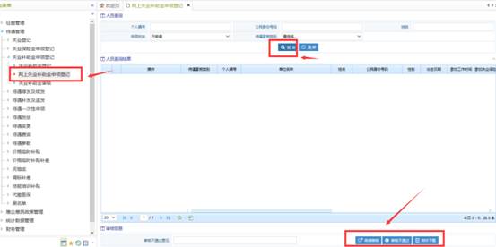 9、网上失业金申领审核。 在核三失业保险系统-待遇管理-失业人员登记-网上失业金申领审核功能窗口中继续办理信息查询与申领审核业务。