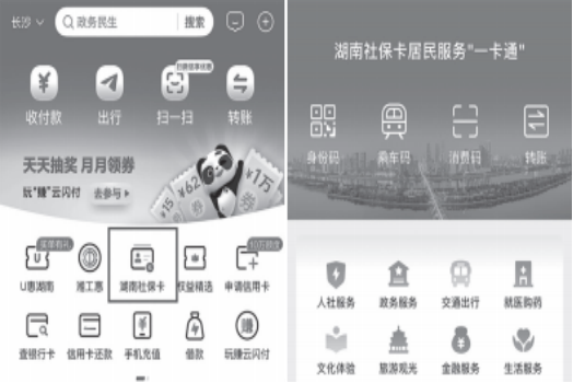 目前,湖南社保卡持卡人数达5652万人,已签发电子社保卡3690万张,全省每年入卡资金达3000亿元。据统计,湖南省社保卡居民服务“一卡通”建设已实现“八个一”,包括:62项人社服务“一卡通办”;14个市州以及全国300余个城市的公交地铁“一卡通乘”;35个旅游景区“一卡通游”;53个文化场馆“一卡通览”;就医购药“一卡通结”;政务服务“一卡通用”;工会福利“一卡通发”;生活服务“一卡通付”