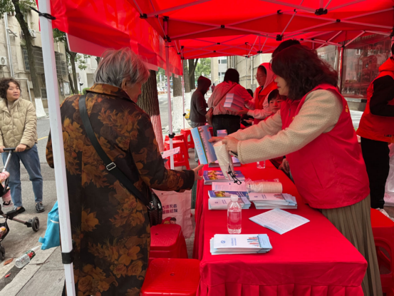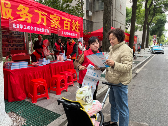 工作人员派发社保政策宣传“小礼品”