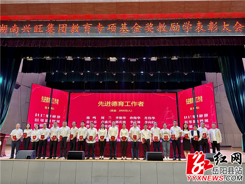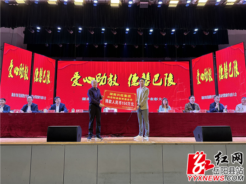 活动现场,侯宇代表湖南兴旺集团向县教育基金会捐赠150万元,宋华为兴旺集团授予“爱心助教,德馨巴陵”牌匾;一批学习标兵和优秀教育工作者获得表彰。