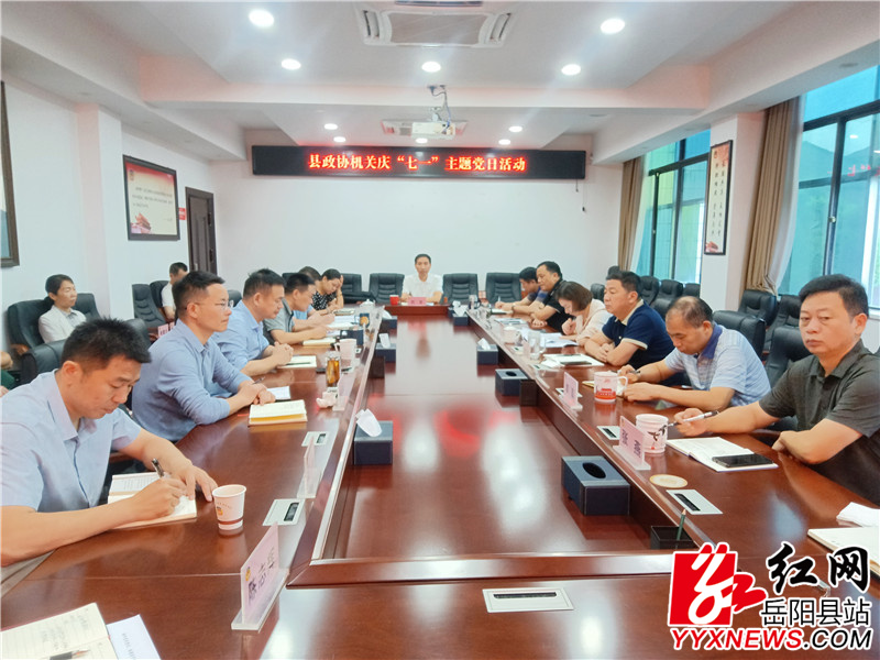 岳阳县融媒体中心6月27日讯(记者 罗爽)6月27日,县政协机关举行庆“七一”主题党日活动、县政协党组理论学习中心组举行2024年第六次集体(扩大)学习暨党纪学习教育第三次专题学习,县政协党组书记、主席周里主持并讲话,副主席刘卫兵、彭荣欣、张忠新、王敏、敖珊参加。