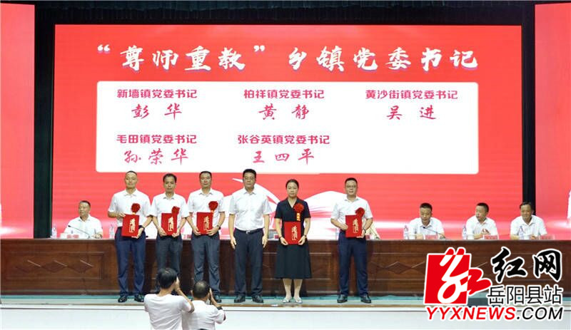 会上,副县长续广宁宣读了尊师重教先进个人和教体系统先进个人表扬通报;会议对全县“最美乡村教师”“十佳教师”“十佳班主任”“尊师重教”乡镇党委书记、优秀班主任、优秀教师、先进教育体育工作者进行了颁奖;尊师重教乡镇党委书记——张谷英镇党委书记王四平,学校优秀党组织书记——县职业中专党委书记黄宇,优秀教师代表——岳阳县第一中学教师许柳明分别进行了典型发言。