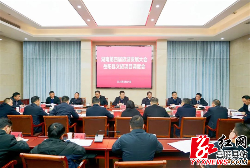 岳阳县融媒体中心2月15日讯(记者 熊佳 周星亮)2月14日,我县召开湖南第四届旅游发展大会岳阳县文旅项目调度会。县委书记肖湘晖出席并讲话,他强调,要深入贯彻落实省委、省政府,市委、市政府部署要求,认真落实第四届湖南旅游发展大会“奋战一百天”省市联合推进会议精神,进一步增强紧迫感和责任感,高品质打造旅发大会岳阳县文旅项目,持续擦亮“天下洞庭·淳美巴陵”文旅品牌。县委副书记、县长吴光文主持会议,县领导周里、张哲君、胡海平、张文毅、续广宁及相关部门和乡镇负责人等参加。