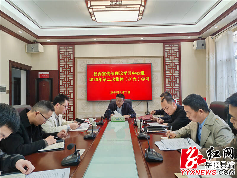岳阳县融媒体中心3月21日讯(通讯员 李佳幸)3月20日,县委宣传部理论学习中心组举行2025年第二次集体(扩大)学习,深入学习领会习近平总书记关于保障和改善民生的重要论述和学习贯彻《中国共产党巡视工作条例》,县委常委、宣传部部长张哲君主持并作总结讲话,县委宣传部理论学习中心组成员以及各办室负责人参加。