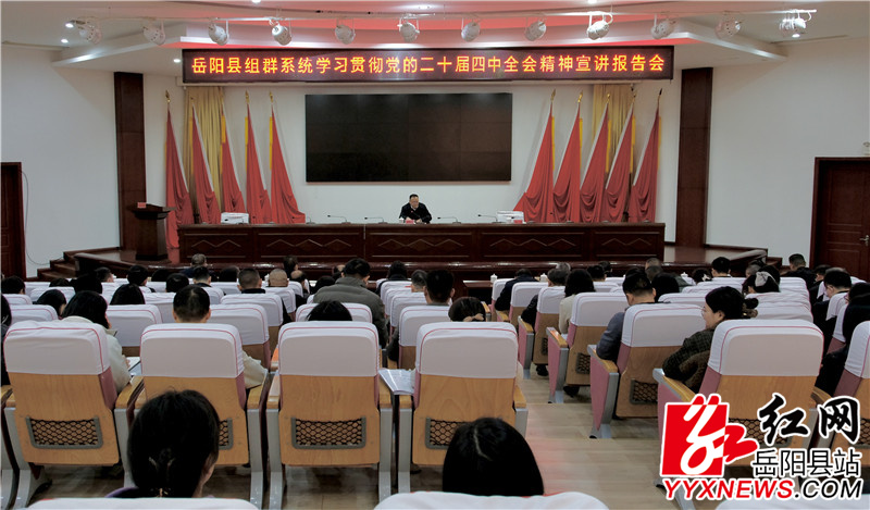 岳阳县融媒体中心12月16日讯(黄阳娇)12月15日,我县组群系统召开学习贯彻党的二十届四中全会精神宣讲会,以集中学习推动全会精神入脑入心,赋能公务员队伍建设。县委常委、组织部部长、县委党校校长方克君作专题宣讲报告并讲话。公务员在职培训班(第二期)全体学员、组群系统干部职工参会。
