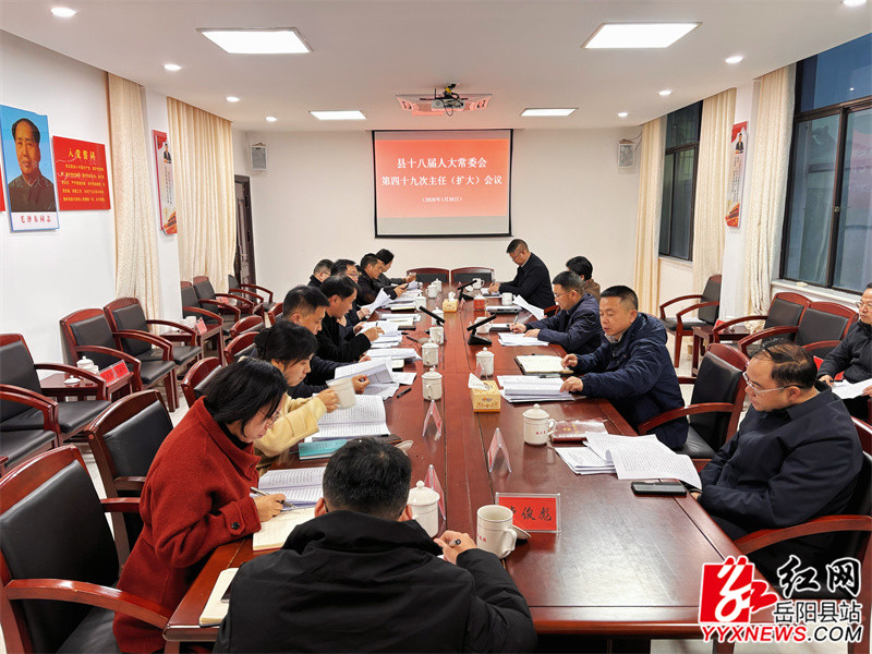 岳阳县融媒体中心1月26日讯(周星亮)1月26日,县人大常委会党组书记、主任周峰主持召开县十八届人大常委会第四十九次主任(扩大)会议。县人大常委会党组副书记、副主任王卫兵,副主任彭碧芳、任三星、周年参加会议。